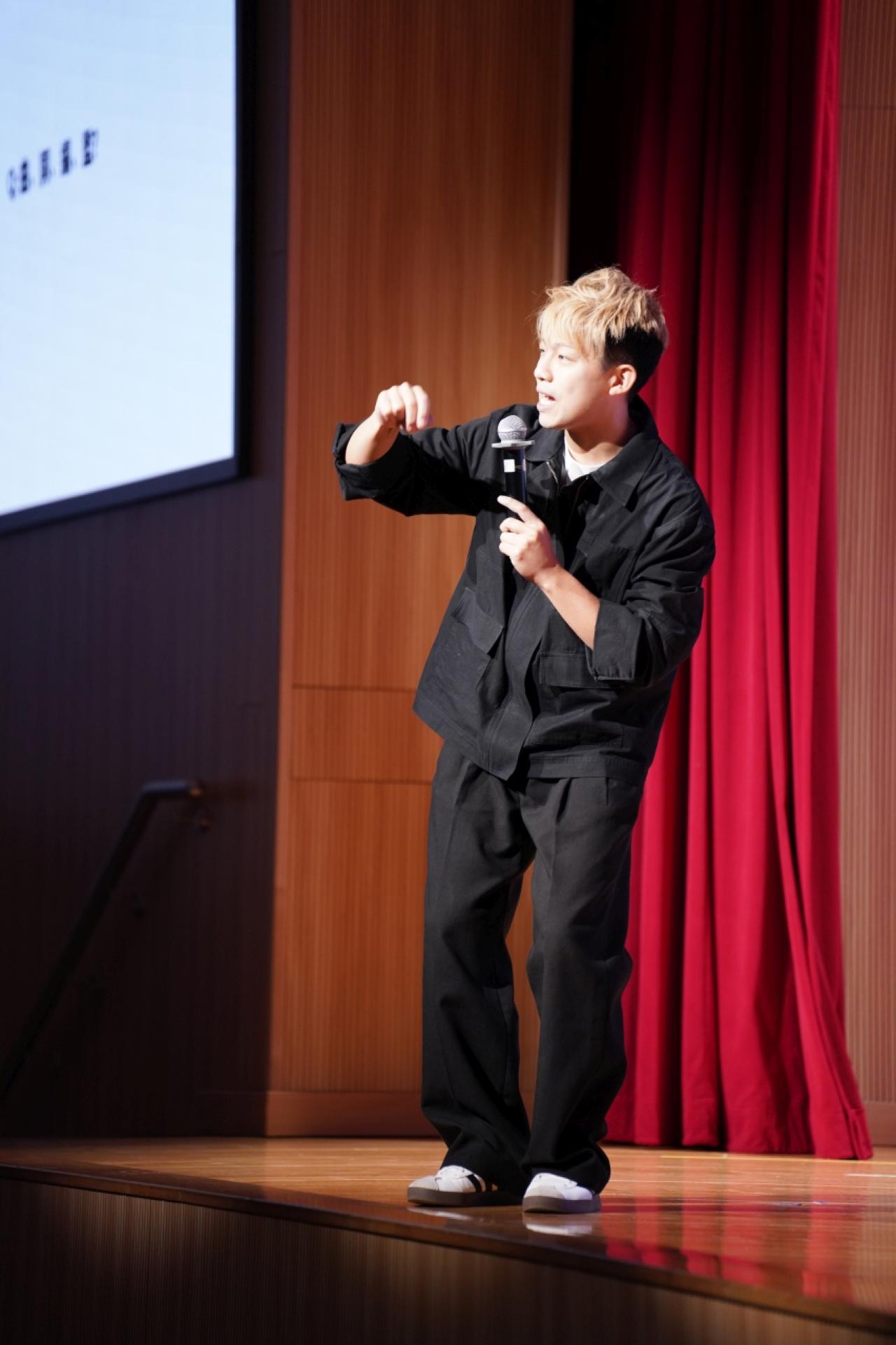 活動在Frankie一段清脆的鋼琴中拉開序幕,悠揚的旋律瞬間抓住了所有同學的注意力。他沒有巨星的架子,如同一位親切的學長,以真摯而幽默的語氣,分享了自己如何從一個懷抱音樂夢想的普通青年,一步步走向專業音樂人的旅程。他坦言,這條路上並非總是掌聲,也曾充滿了迷茫與挑戰。他講述了創作瓶頸時的苦悶、作品不被認可時的失落,以及如何從日常生活中汲取靈感,將挫折與感悟化為音符與歌詞。