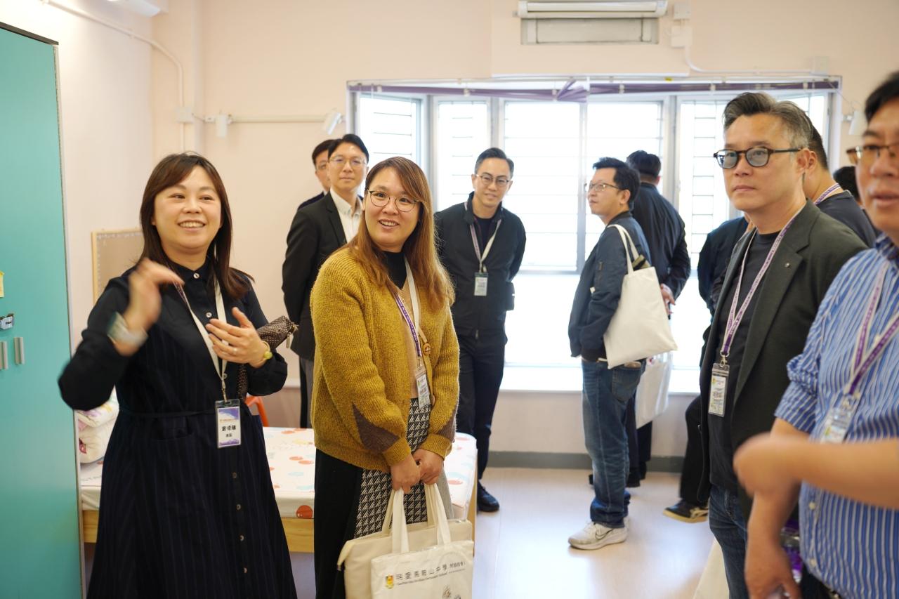 在隨後的校園導賞環節,嘉賓們實地參觀了本校多項特色教學設施。一行人先後到訪配備專業器材及模擬場景的「健康護理實習專室」,了解學校如何透過模擬實境提升學生的醫護實務技能;隨後登上具創意教學功能的「『有價巴士』生活體驗館」,體驗學校如何將價值觀教育融入生活情境之中。最後,嘉賓參觀了「學校宿舍」,考察本校獨特的宿舍教育模式,了解學校如何透過群體生活,訓練學生的自理能力及建立良好的人際關係。
