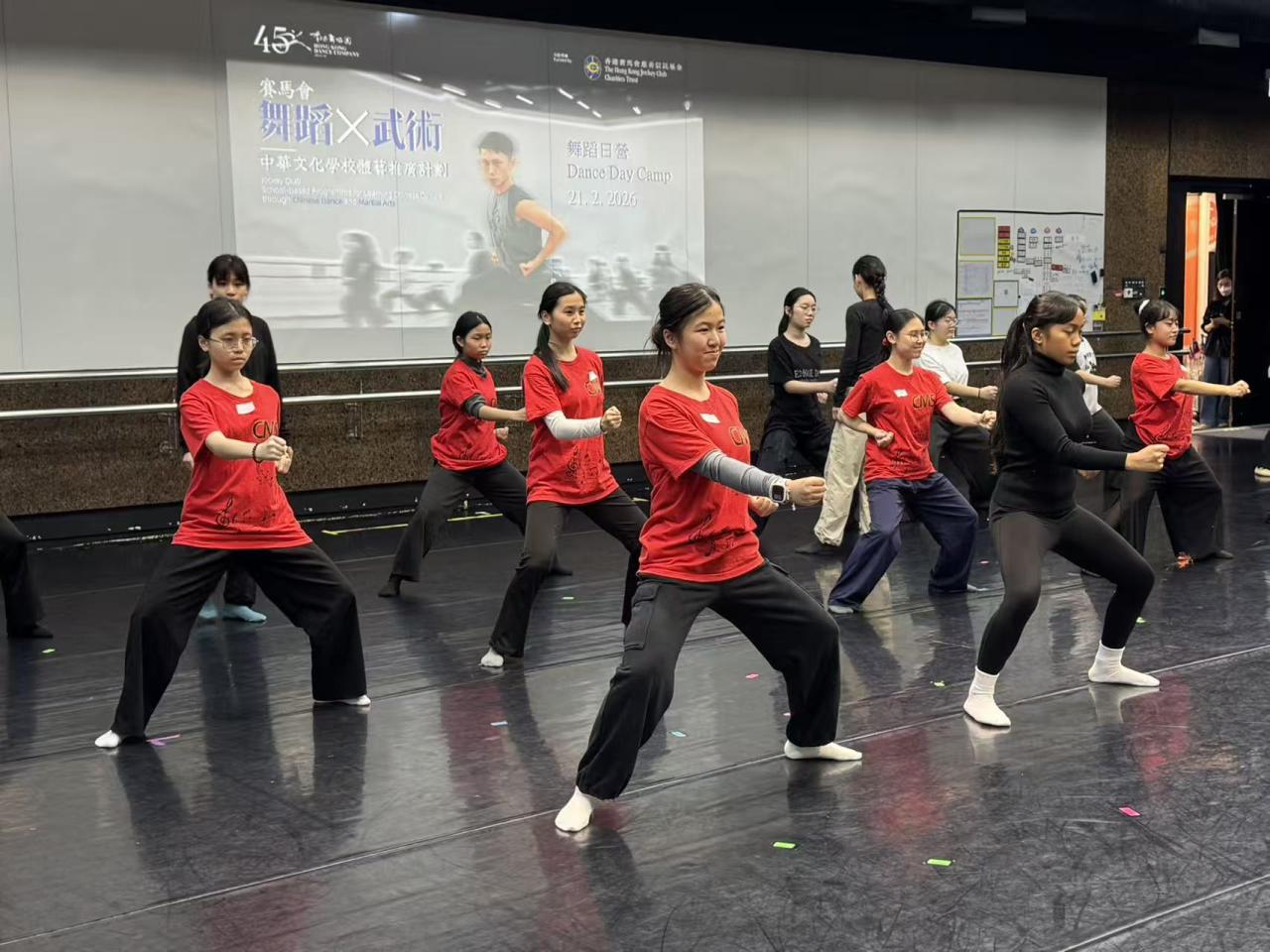 本校舞蹈組於本年大年初五,參加由香港舞蹈團主辦之賽馬會舞蹈X武術【中華文化學校體藝推廣計劃】舞蹈日營,在校友梁樂陶師兄的帶領下,前往香港舞蹈團的訓練場地,體驗武術與舞蹈Crossover的活動及展演。大會的導師之一韋羅瑩老師也是我校的舞蹈畢業生,同學份外親切。同學體驗了功夫,舞獅及陶泥等活動,更作出成果展示,舞組隊長更被邀成為學生代表,分享參加感受。同學的參與得到主辦的高度讚賞,每人獲發證書一張,以作鼓勵。