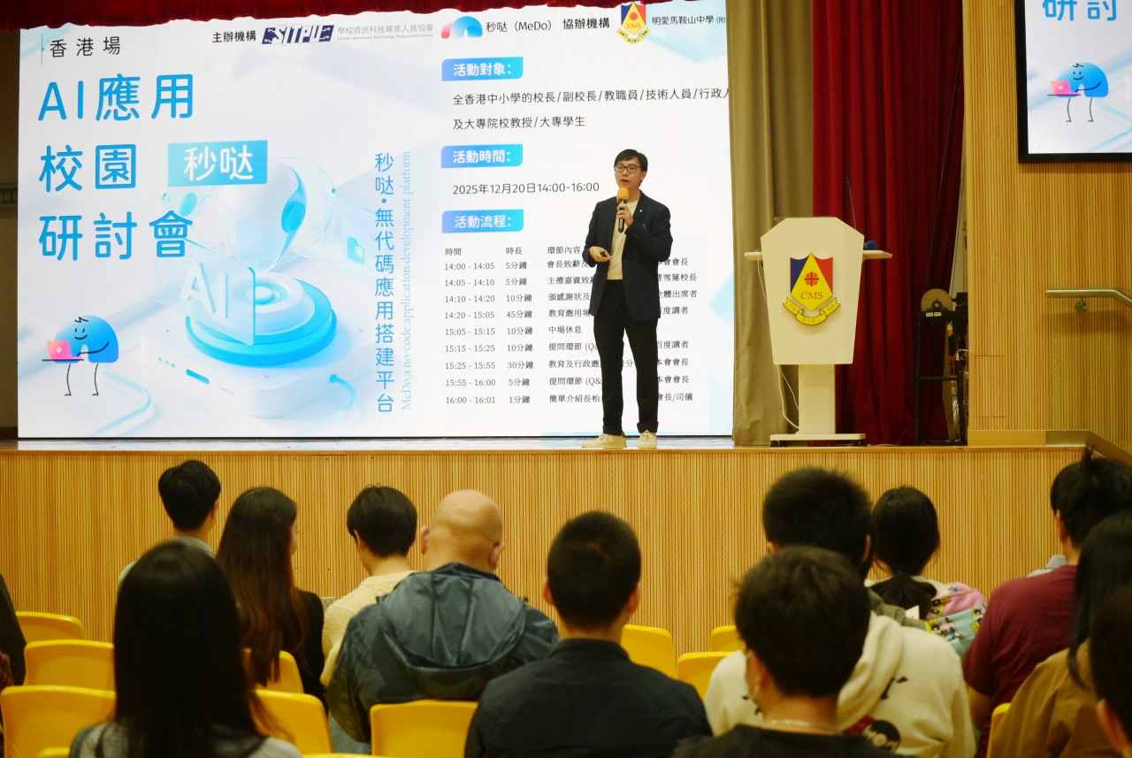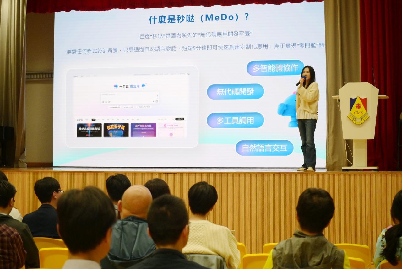 由學校資訊科技專業人員協會主辦、本校協辦的《百度AI應用校園研討會》已於12月20日於校內順利舉行。是次研討會特別邀請全球最大的中文搜索引擎公司——百度公司的代表專程由北京遠道而來,為香港學界介紹「秒哒MeDo」於教學與學校行政管理上的最新應用與發展趨勢。