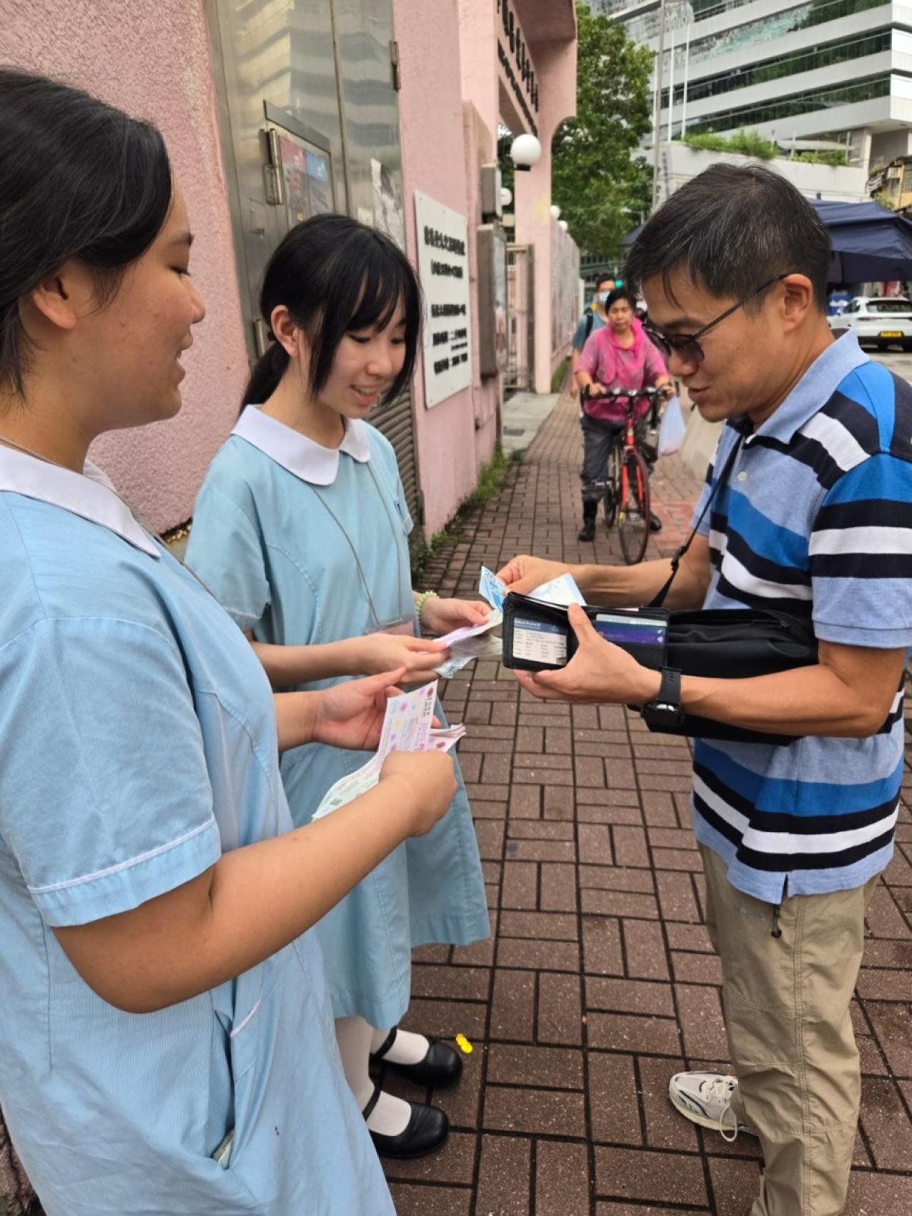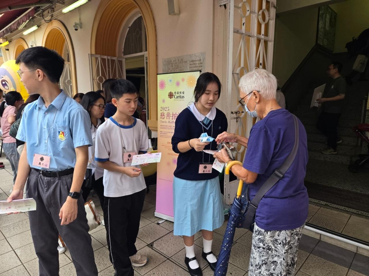 活動當日,同學們全情投入,展現出極大的熱忱與責任感。他們在熙攘的人群中,以真誠的笑容和清晰的講解,向每位街坊和教友介紹明愛獎券的意義。從最初的羞澀到後來的自信大方,同學們的成長顯而易見。他們不僅是銷售獎券,更是在傳遞一份愛心與關懷。