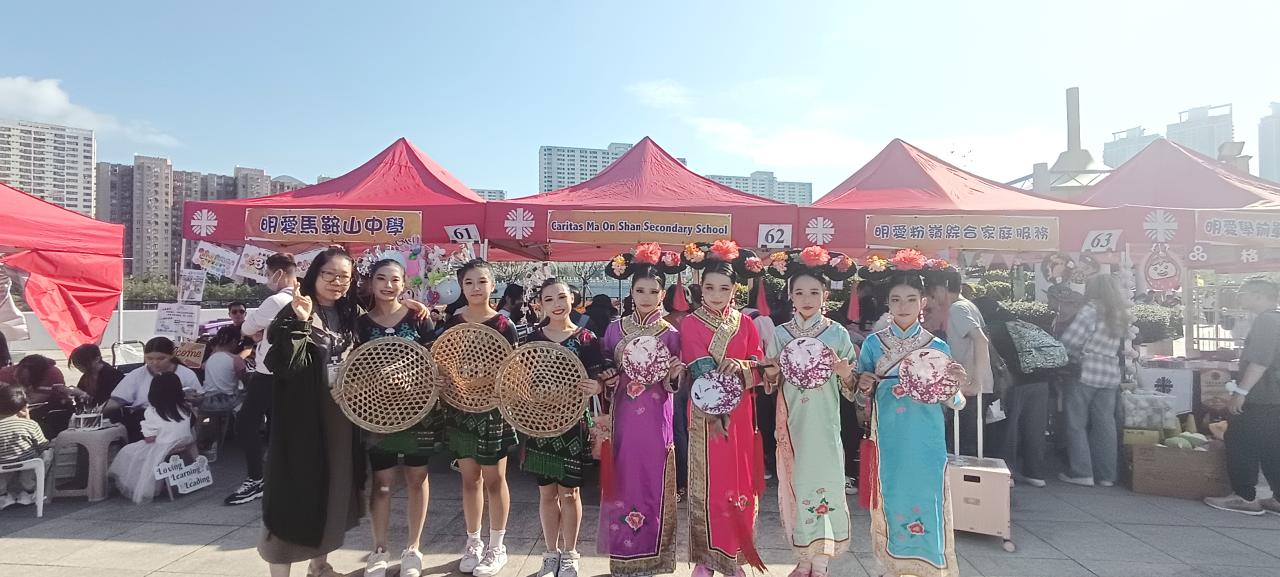 2025-11-23 舞蹈組到沙田中央公園出席明愛賣物會,並演出【清宮行】及【逐雨黎情】兩齣舞蹈表演,當天陽光猛烈,在環境的限制下,同學們仍然非常認真地完成演出,其他在場的明馬師生也有到來支持及打氣,體現了學校團結和堅毅的精神。 校園展影 舞蹈組