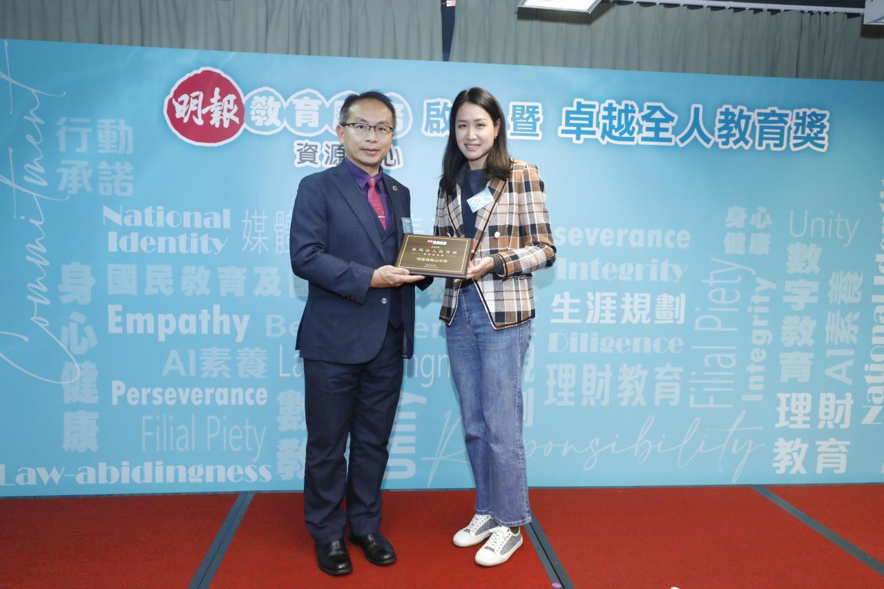 頒獎典禮於日前隆重舉行,本校袁之彤助理校長代表學校出席,並從世界華文媒體執行董事兼明報報業有限公司行政總裁張怡嘉女士手中接過獎座。這座獎項不僅是對校方過去一年深耕全人教育的肯定,更是對全體教職員、同學與家長共同努力的莫大鼓勵。