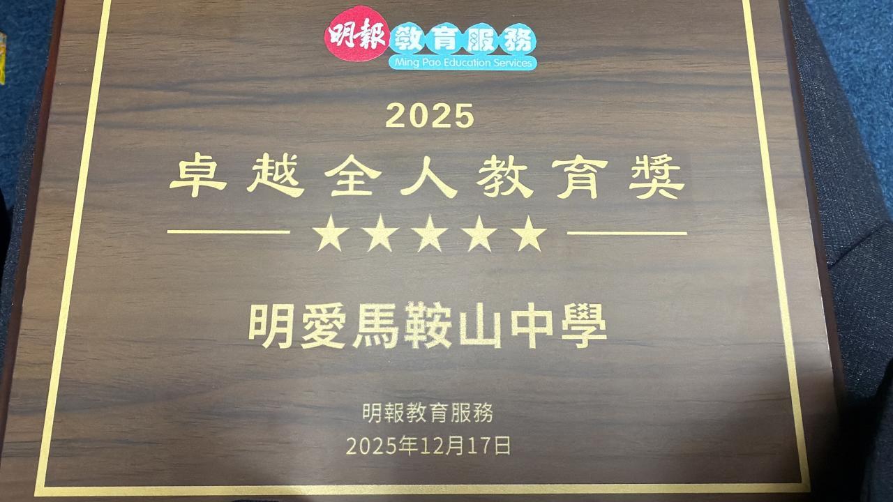 明愛馬鞍山中學在推動優質教育的道路上再創輝煌!本校近日榮獲由《明報》教育網頒發的「2025卓越全人教育大獎」,以表揚校方在培育學生多元才能、品德發展及營造全方位學習環境空間的卓越成就。