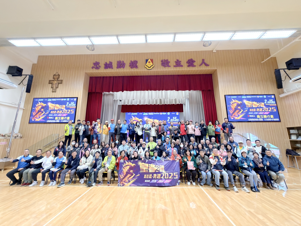 作為沙田區一年一度的體壇盛事,由力行社主辦、學校協辦的「皇者之戰」馬拉松—跨越2025,即將蓄勢待發。為確保這項大型賽事能安全、順暢地進行,本校於 2026 年 2 月 1 日(星期日)在學校禮堂舉行了盛大的義工簡介會,為賽事作最後衝刺。