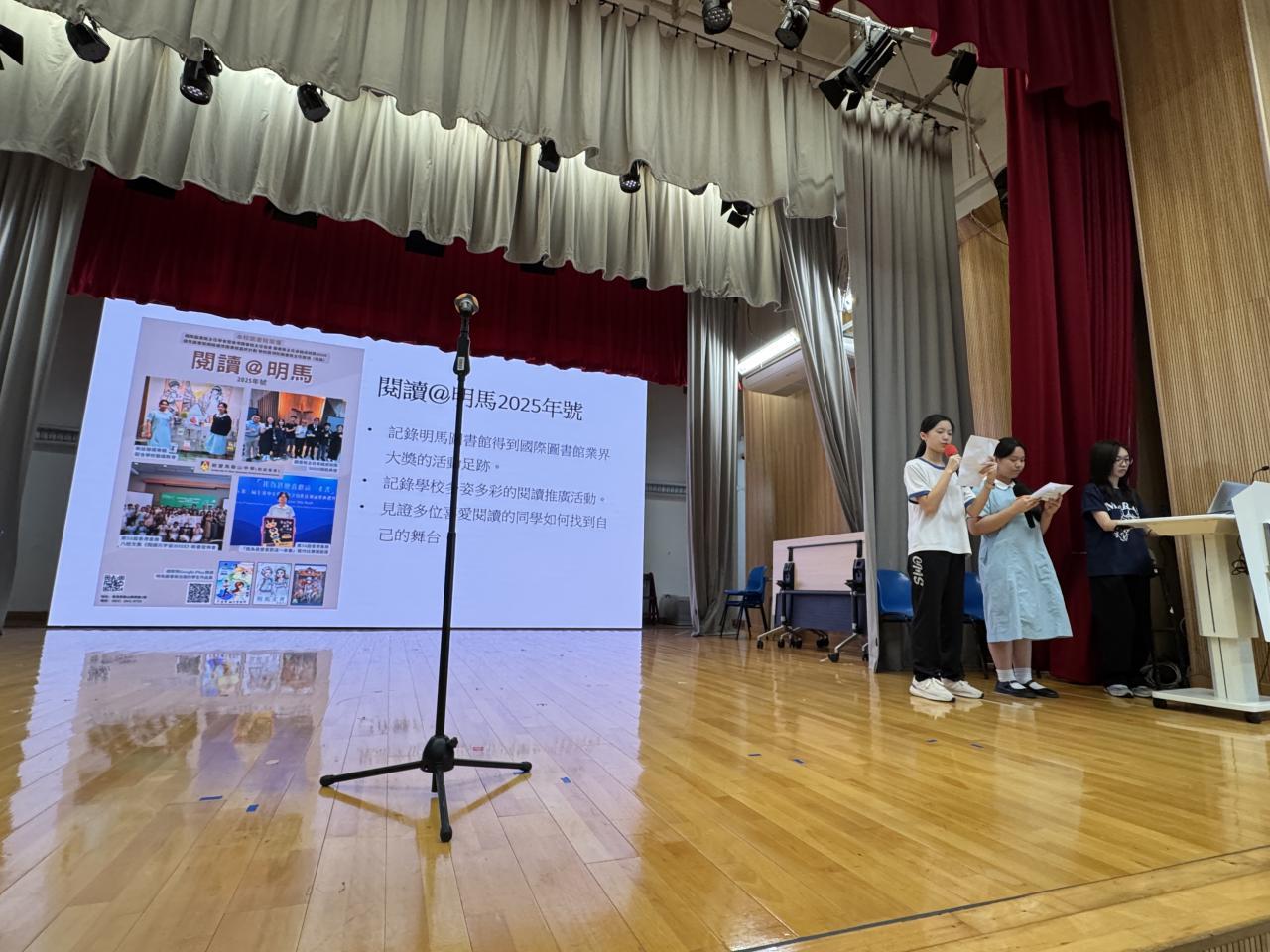 兩位學校推廣大使領袖3A陳彥彤和4A曹敏莉於10月3日早會,代表推廣組為學校四本新刊物《醫療保健教育樞紐》、《以藝育人2025》、《閱讀@明馬2025年號》和《言傳身教:天人合德(環保篇)2025》進行新書發佈,讓同學加倍認識學校的發展和成就。有興趣閱讀的公眾人士,歡迎點擊以下連結閱讀:https://caritasmaonshan-my.sharepoint.com/:f:/g/personal/leeti_cmos_edu_hk/EjPfom5HCSZKuKkvdl9yuwkBVL3_kxCWQffaHgAZmF0Zhg?e=rEBsqk