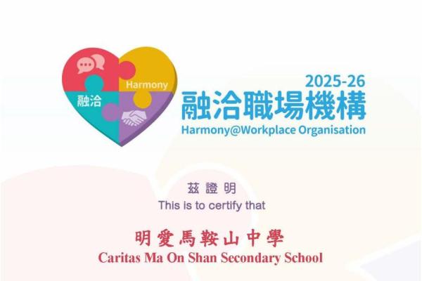 明愛馬鞍山中學舞蹈組成立於2012年,是其中一個重點發展的課外活動。學校提供不同的訓練項目,包括:基訓課、毯子課、技巧課、中國舞、現代舞、東方舞等等。演出方面,舞蹈組在2021年以全港唯一受邀中學的身份,參加由政府官方主辦,於紅磡體育館演出的國慶文藝晚會,參演舞劇【鳳凰于飛】,登上央視,並作全國網上播放。近期的比賽方面,曾在第58屆和第59屆學校舞蹈節中,連續兩年拿下「中國舞」和「現代舞」雙組別的團體季軍,在第60屆學校舞蹈節中,進軍「東方舞」組別,拿下了團體總季軍。除了拓展學生興趣和眼界外,近年,本校為學生打通一條「藝考之路」,成功保送畢業生升讀本地及海外表演藝術類大學,主修舞蹈專業。2024年八月,舞蹈組首次踏出國門,遠征韓國,參加第22屆首爾盃藝術大賽,派出五個舞蹈,以唯一香港隊伍的身份與國內及韓國舞者進行比賽交流,並榮獲「團體組織金奬」及舞蹈類「最高奬」,為港爭光。