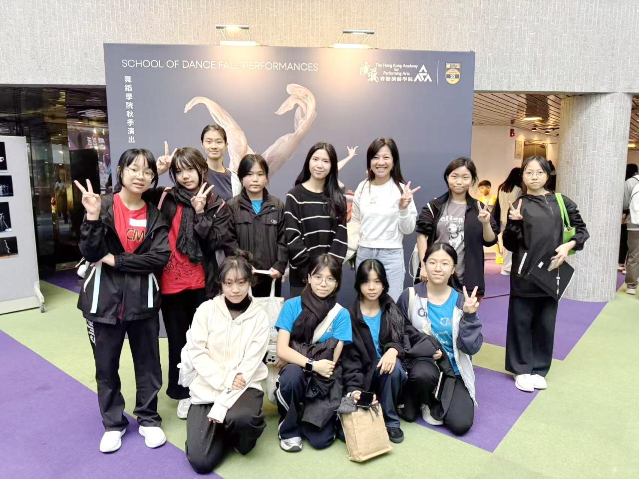 2025-11-22 舞蹈組於22-11-2025參加了由香港學界舞蹈協會及香港演學院主辦之「中學畢業後延續舞蹈教育-藝術有出路」升學講座,當天我們由曹校長帶領,一早到達香港演藝學院,在那裡就讀的師兄和師姐們特地來接待我們,講座令同學獲益良多,我們在學的師姐們也有做經驗分享。下午時段,我們看了舞蹈學院的演出,當中見到了師兄的身影,非常厲害。 校園展影 舞蹈組