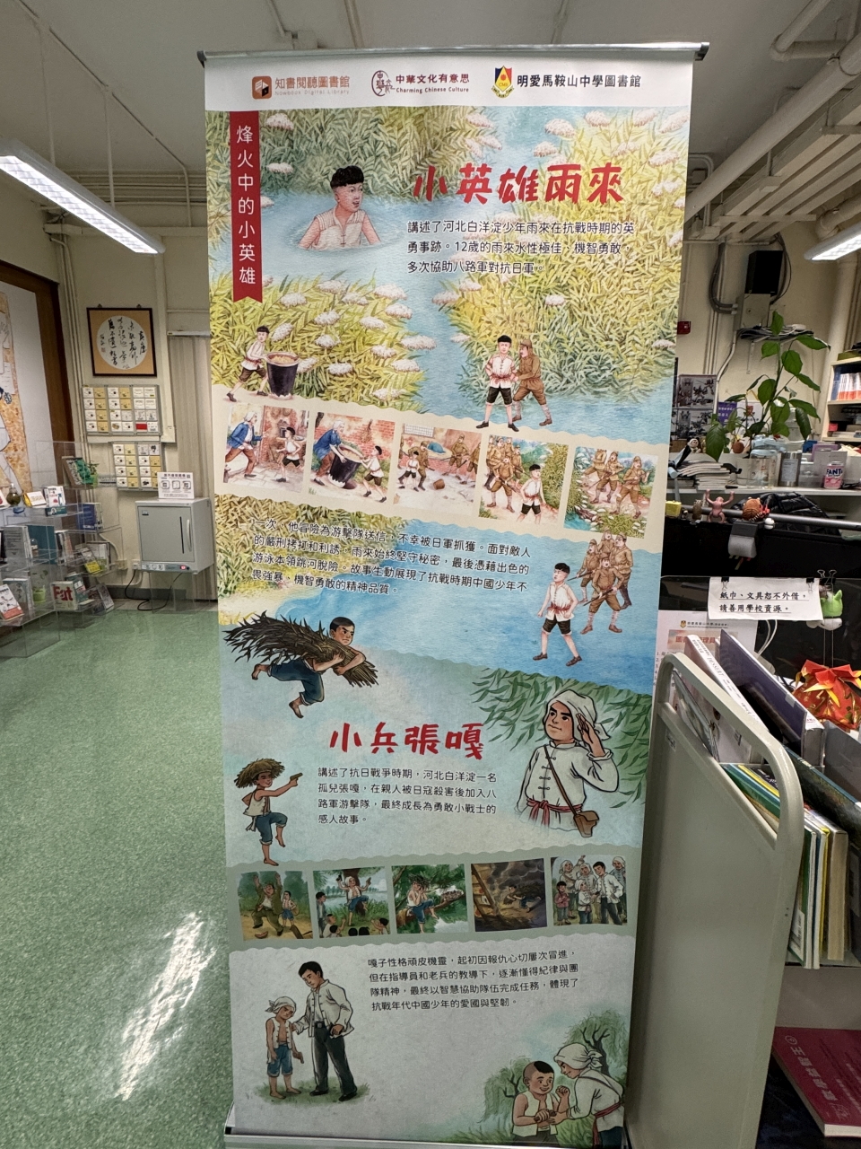 為配合人文體藝多元學習雙周,圖書館與社會及人文學科合辦「抗戰無名英雄之義德」閱讀專題小展,設自主學習展板,讓同學認識一些抗日無名英雄合乎義德的舉措,對歷史有更深入的認識。