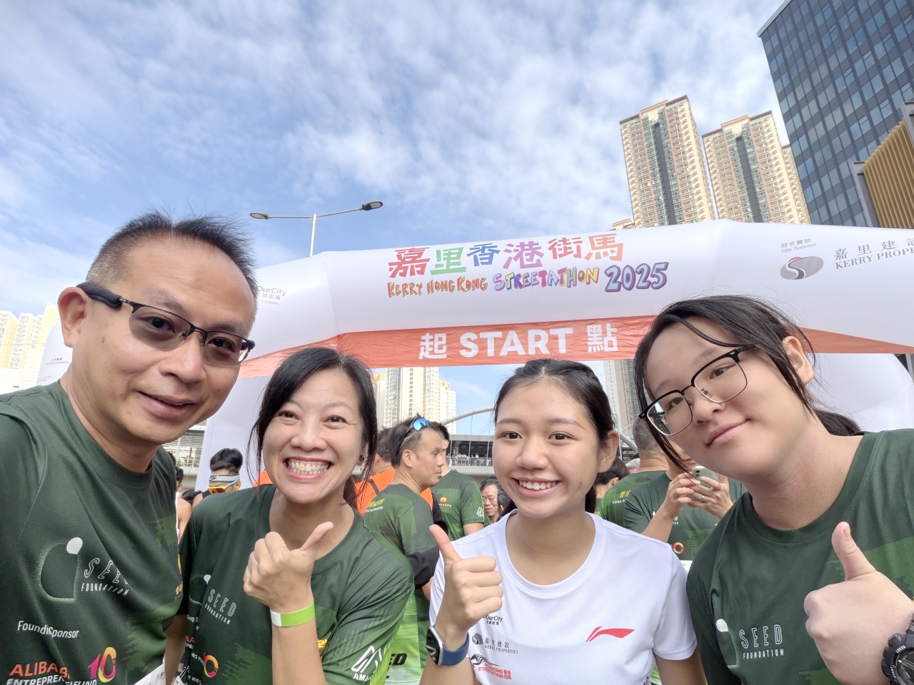 學校師生於近日成功參與了極具意義的「嘉里香港街馬2025」賽事,充分展現了學生的運動潛能和堅毅不拔的意志。是次活動在香港中文中學聯會及 SEED Foundation 的鼎力支持與協助下,由本校曹校長和袁助校親自帶領兩位學生一同參賽。師生們在賽前進行了充分準備,不僅提升了體能,更在心態上做好了迎接挑戰的準備。最終,四位代表均成功完成了極具挑戰性的十公里賽事。