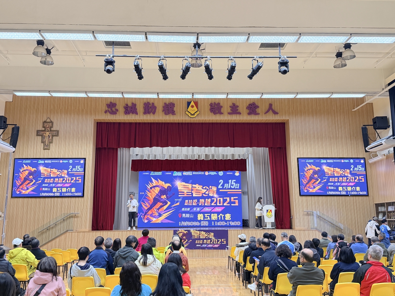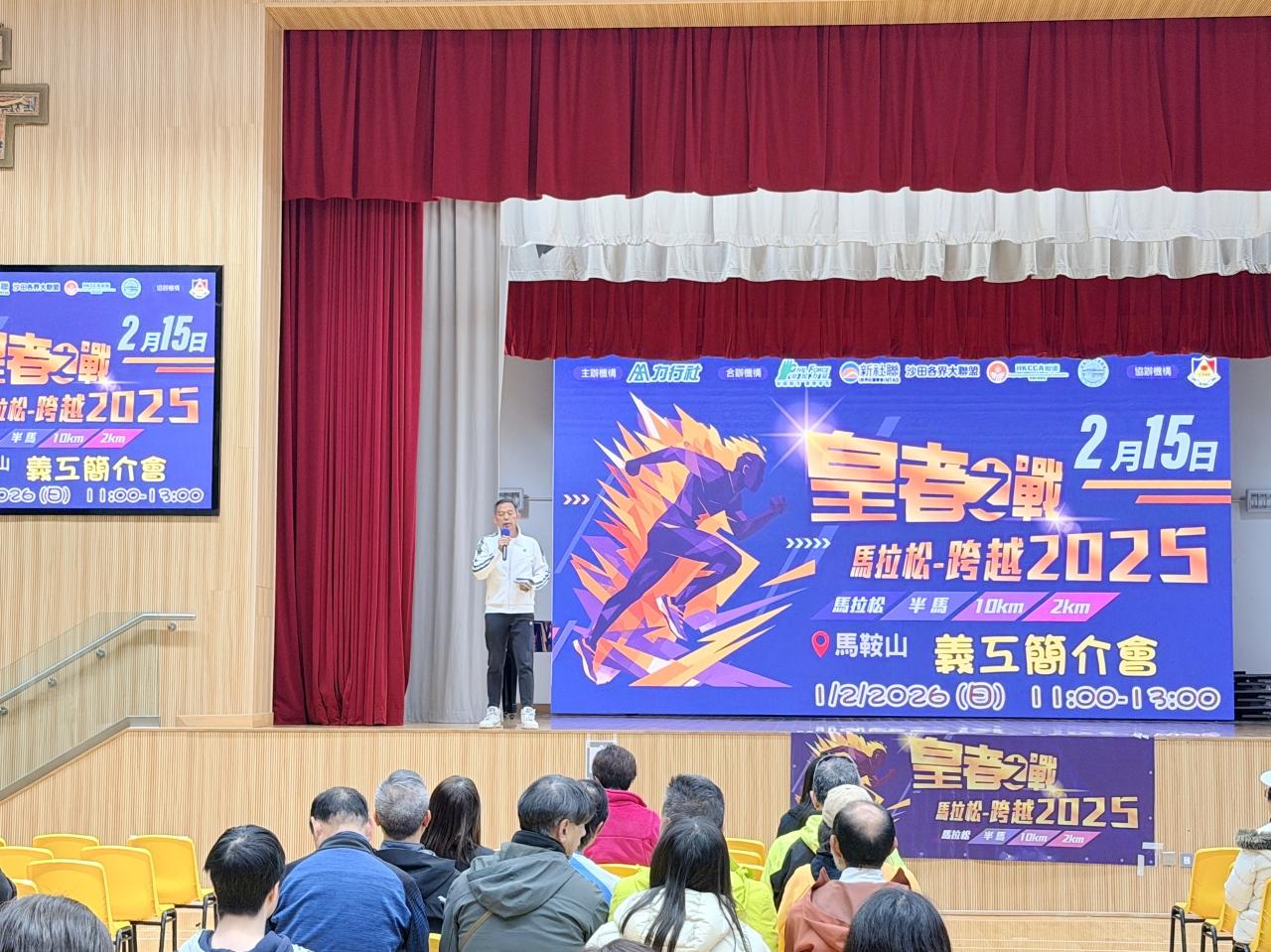 作為沙田區一年一度的體壇盛事,由力行社主辦、學校協辦的「皇者之戰」馬拉松—跨越2025,即將蓄勢待發。為確保這項大型賽事能安全、順暢地進行,本校於 2026 年 2 月 1 日(星期日)在學校禮堂舉行了盛大的義工簡介會,為賽事作最後衝刺。