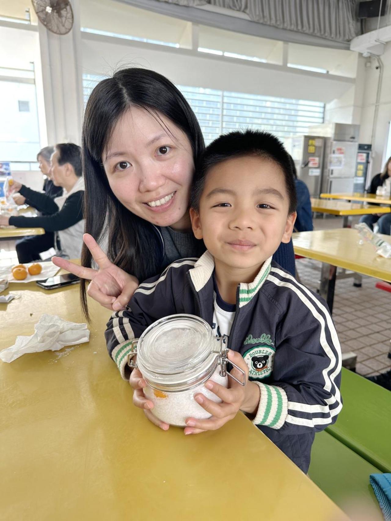 活動當日吸引了眾多富寶花園的居民踴躍參與。在學校師生及義工的細心講解與協助下,街坊們親自動手,將一顆顆金黃的年桔剪下、清洗、抹乾,再以「一層粗鹽、一層桔」的傳統工序,小心翼翼地將其放入玻璃瓶內封存。製作過程中,不少長輩熱心分享昔日醃製鹹柑桔的經驗與化痰止咳的功效,年輕一代與學生們則從中學習傳統手藝。大家一邊製作一邊交流日常點滴,展現了跨代共融的動人畫面,現場充滿歡聲笑語。